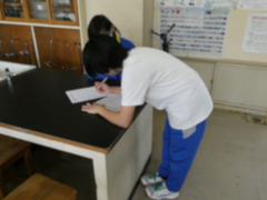 上教大院生さんが大学の支援プロジェクトの一環で昼休みに数学を教えてくれる企画=「ちょこっと数学」が昼休みに実施されています。数学が苦手な人、テスト前にがんばりたい人が理科室に集まって学習します。数学科の先生方も一緒に指導にあたってくれます。ちょこっと数学は不定期ではありますが、これまでも実施しされています。春日中の先生以外の方から教わる絶好の機会でもあります。この機会を活かすかどうかは、生徒のみなさんの委ねられています。たまの昼休み…数学に時間を使ってみてはいかがでしょうか?