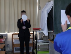「去年から何センチ伸びた~?」「10センチ弱ですかね~」と2年生の男子生徒。思春期の目に見える体の変化には驚かされます。みなさんの目に見えない心の成長も願っていますよ。視力検査の様子です。中学生の間に、勉強のし過ぎで?!視力が悪化する生徒が多くいます。視力が落ちてきたら、ぜひ眼科への受診をお願いします。