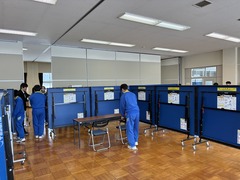 今回の面談会場は、多目的室を仕切り壁や卓球台を活用して、6つのブースに分けて設営しました。その様子は、まるでテレビで見る企業の集団就職説明会の会場のようで、少し声の大きな学級担任を心配する学年主任の姿も…(笑)