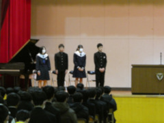 久しぶりの全校朝会です。後期級長任命式が行われ、各学年の委員長が壇上に立ち...